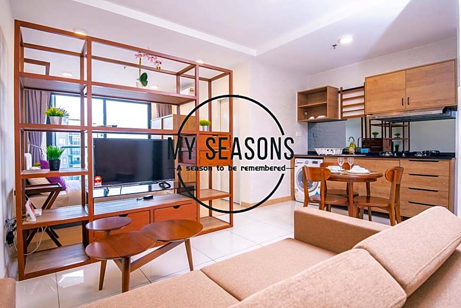 This apartment has a balcony and seating area.